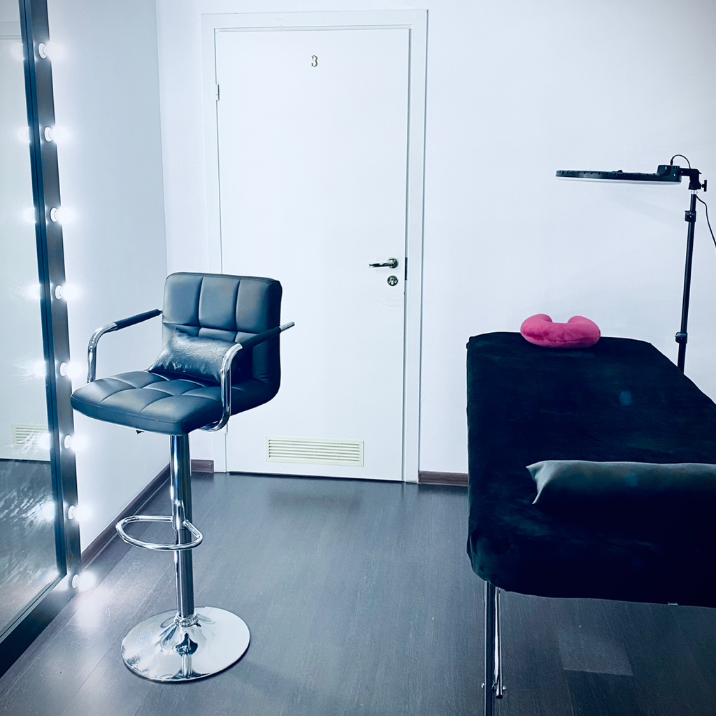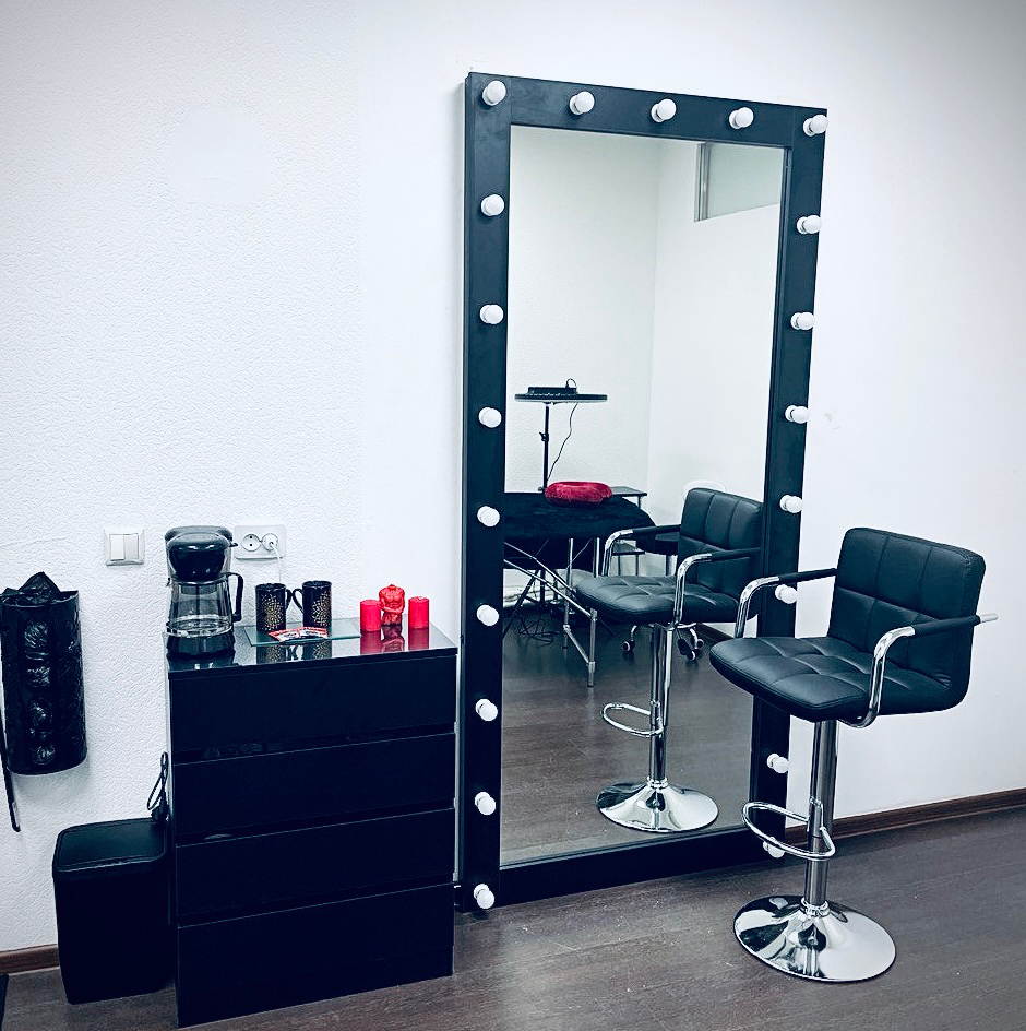 ✅ И конечно же всё необходимое (Кольцевая лампа, тележка, косметологический стул, гримерное зеркало, кресло, комод)