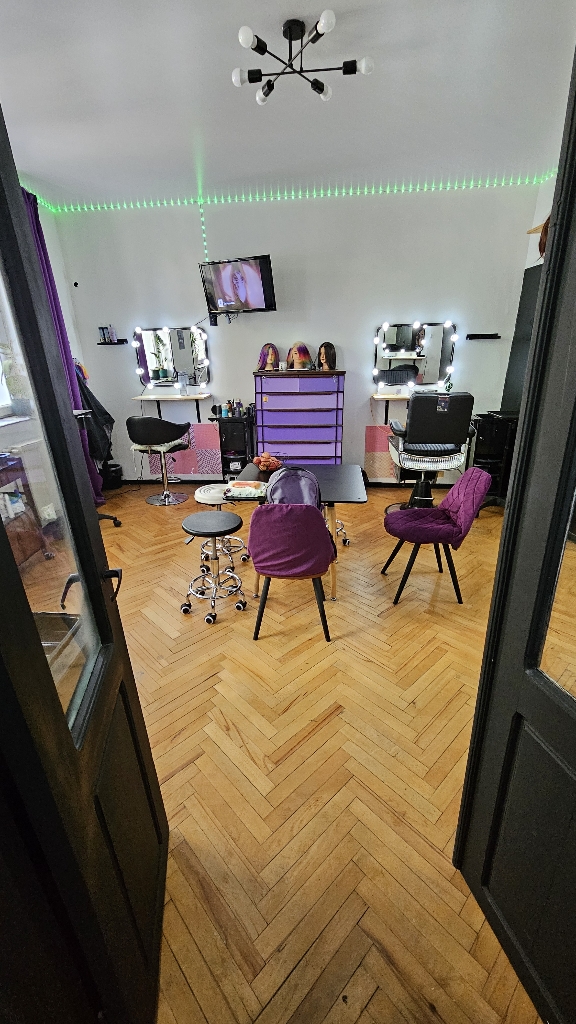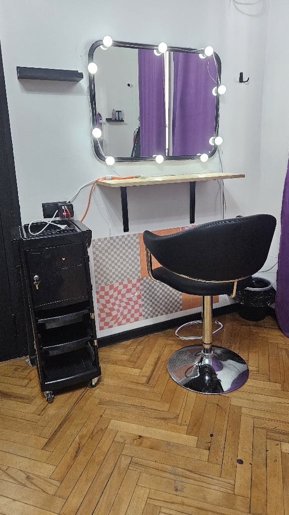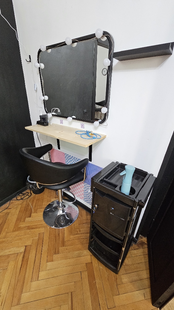 We offer a convenient hourly rental service for fully equipped workstations designed for hairstylists and colorists. You'll have access to a modern chair, a large mirror, professional lighting, easy access to a hair washing station, USB outlets, and free Wi-Fi. You can also use the kitchen, store your tools, and enjoy a comfortable and welcoming atmosphere. Georgia, Tbilisi.