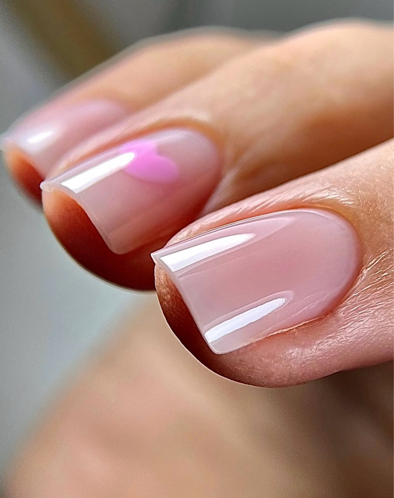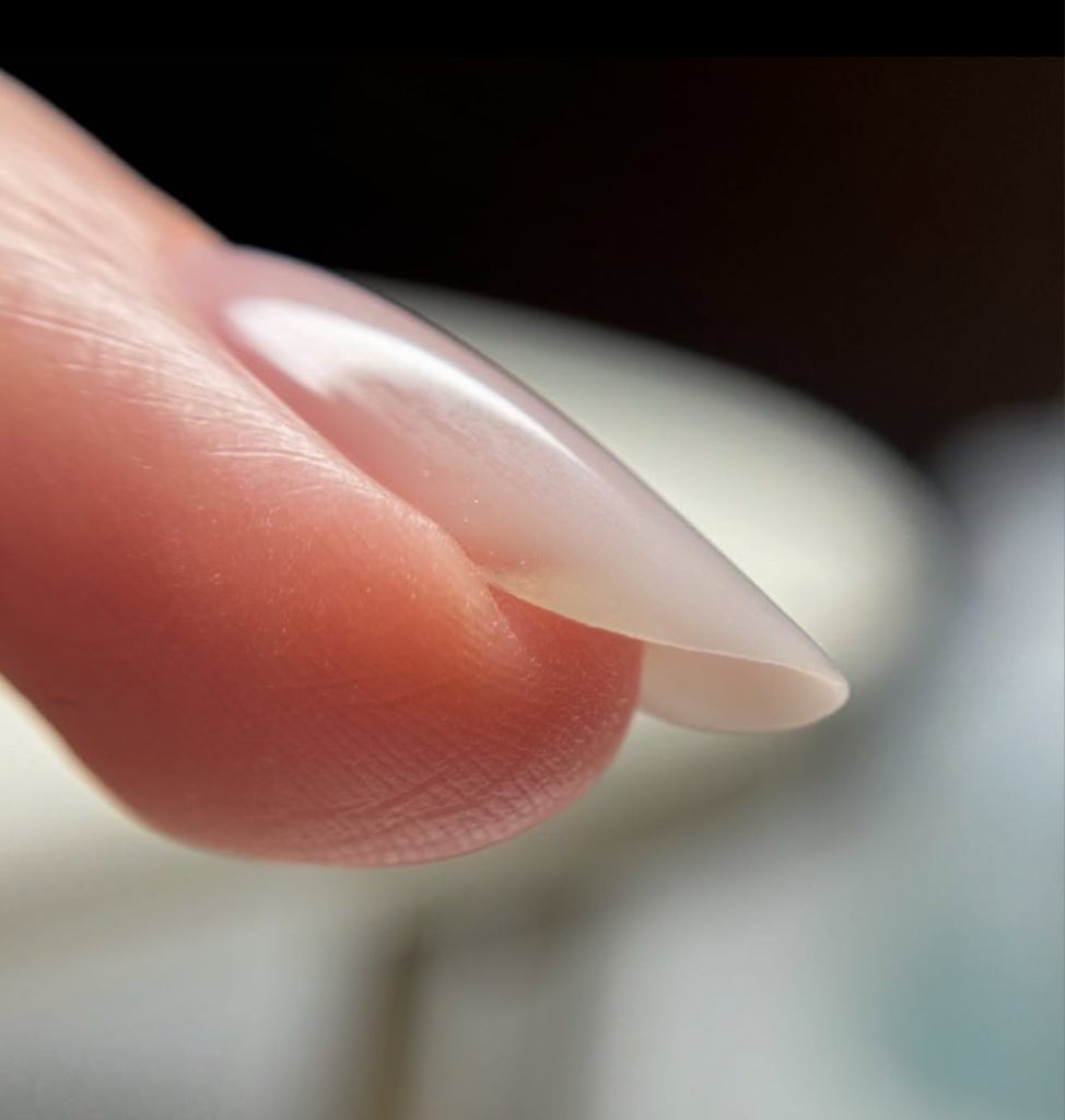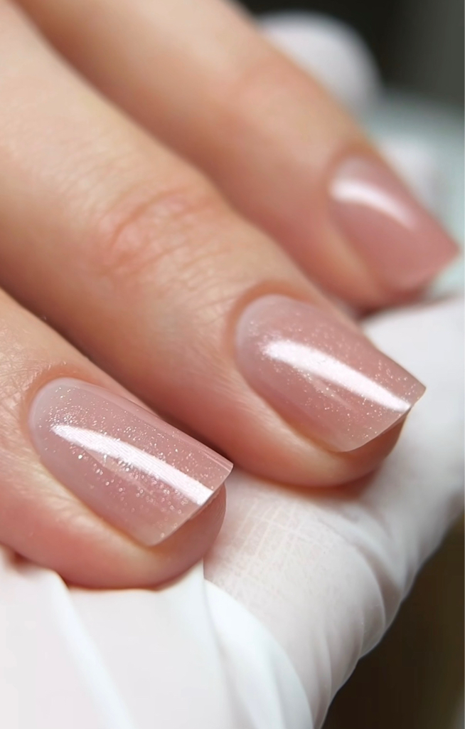 Ultra-thin hard gel reinforcement for natural nails, created with a medical-grade dry e-file technique.