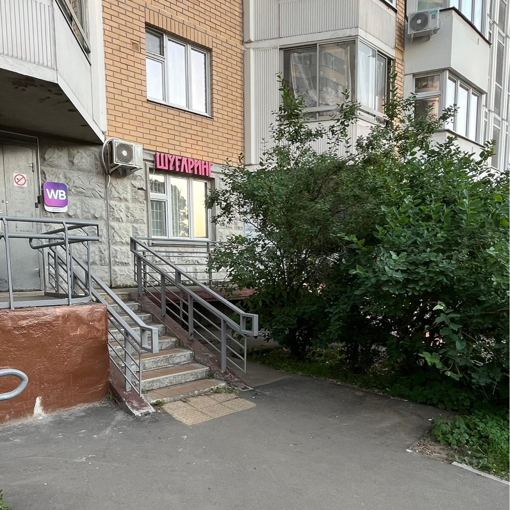 Ул. Ангарская 51к2, вход с внешней стороны дома, розовая вывеска Шугаринг