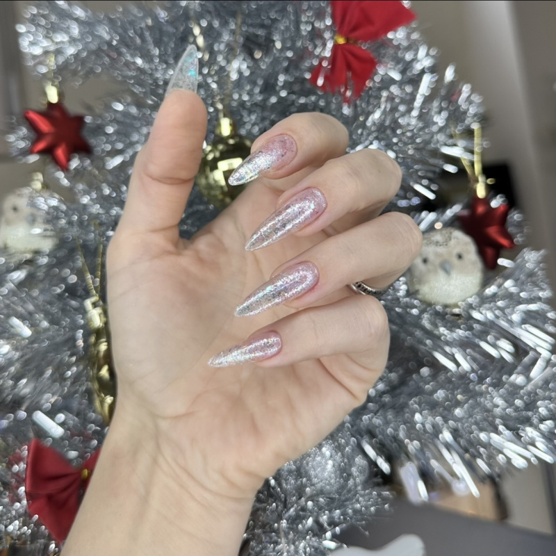 Выбрала форму "мягкий квадрат" и нежный дизайн с голографической фольгой. Роза настоящая волшебница! С самого начала она меня успокоила, все подробно объяснила: какой материал лучше, как будет проходить про