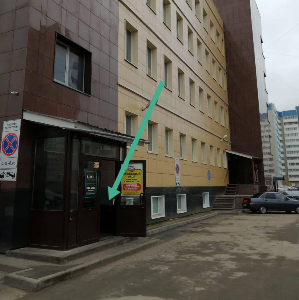 ВХОД С ОБРАТНОЙ СТОРОНЫ ЗДАНИЯ, СТЕКЛЯННОЕ КРЫЛЬЦО. НА ДВЕРЯХ «СЛУЖЕБНЫЙ ВХОД ПИЦЦЫ ФАБРИКИ». 2 ЭТАЖ (в профиле прикреплены фото входа).