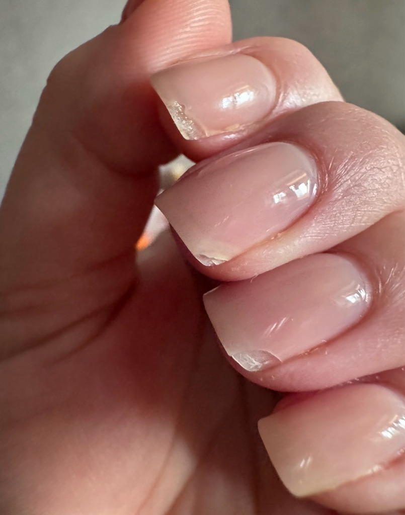 Углы откололись через 3 дня на двух руках. Я сообщила об этом студии. В ответ тишина..