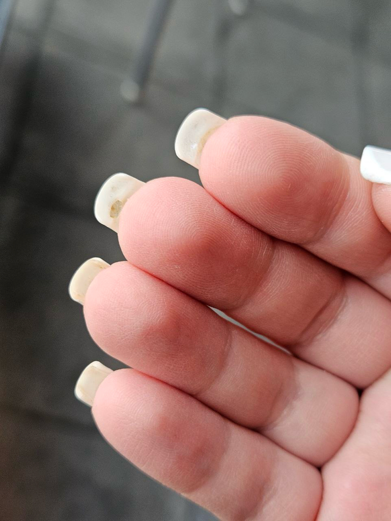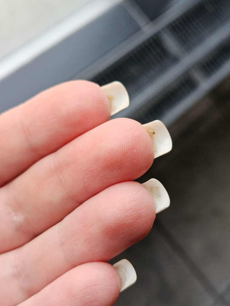 Было наращивание всей длины. Примерно на 5 день начали появляться дыры в обратной стороны ногтей. Никогда с этим не сталкивалась, но не приятно, так как из за этих дыр появились проплешины и цвет уже лежал не красиво((( Очень неприятно…