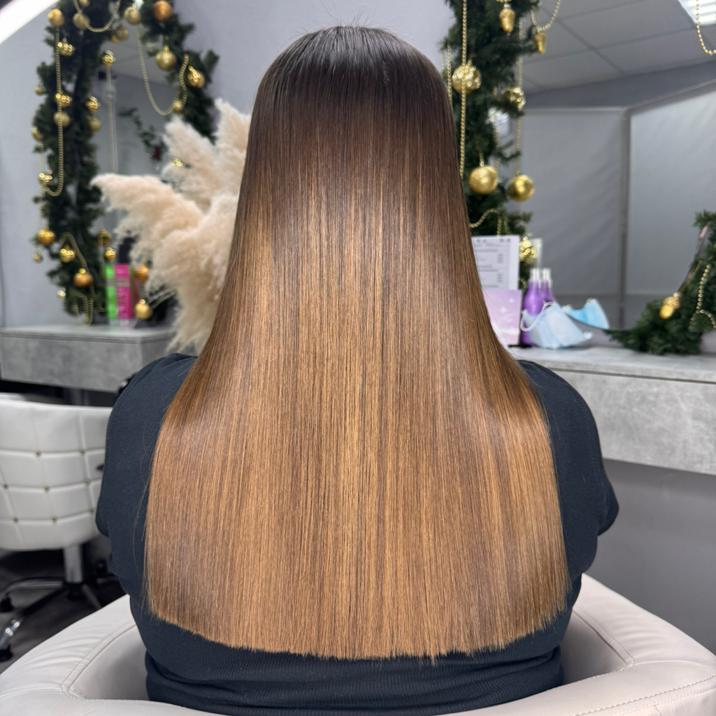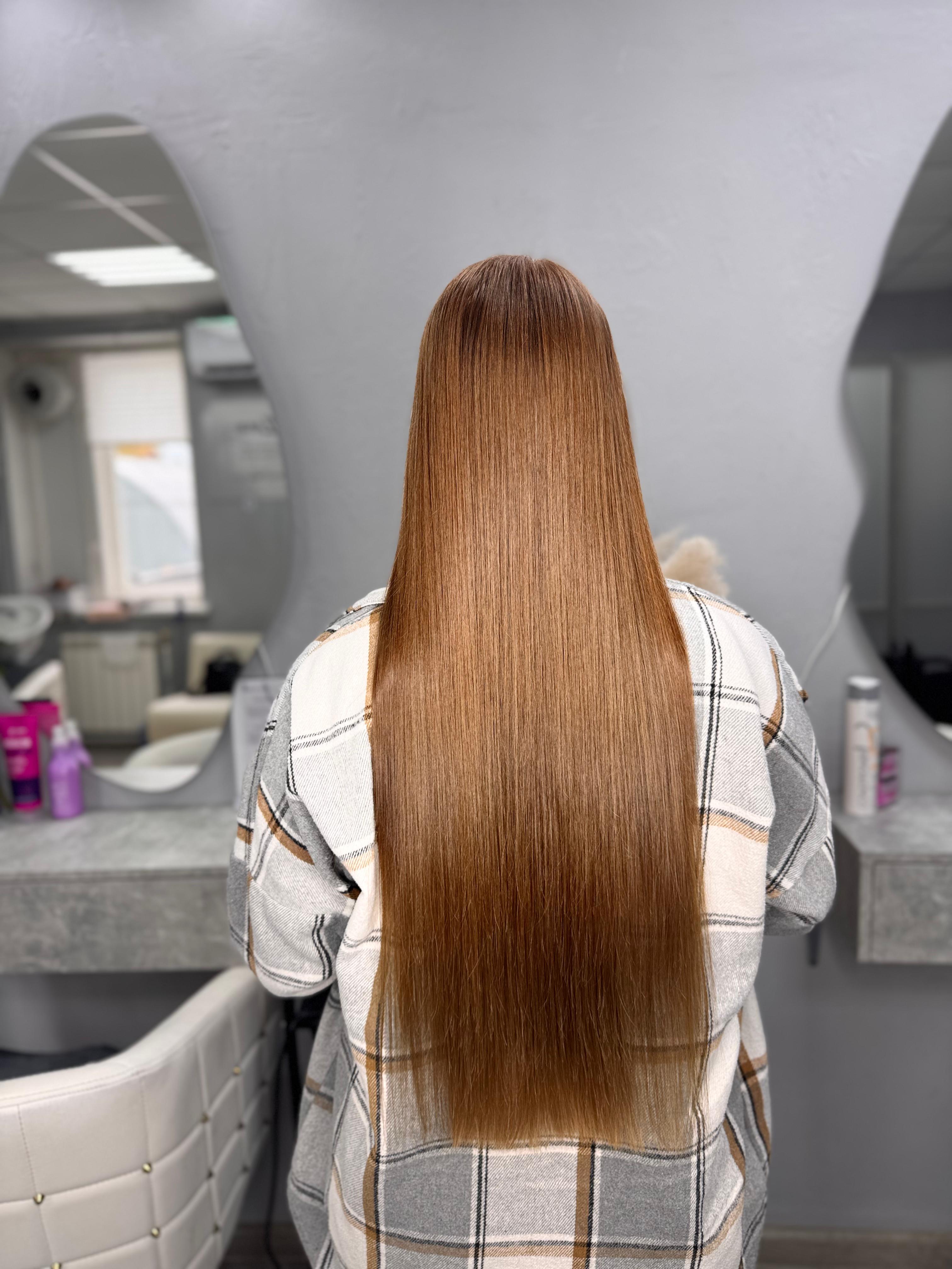 Сделали кератиновое выпрямление, волосы после процедуры прямые и шелковистые , теперь можно забыть про утюжок 😃