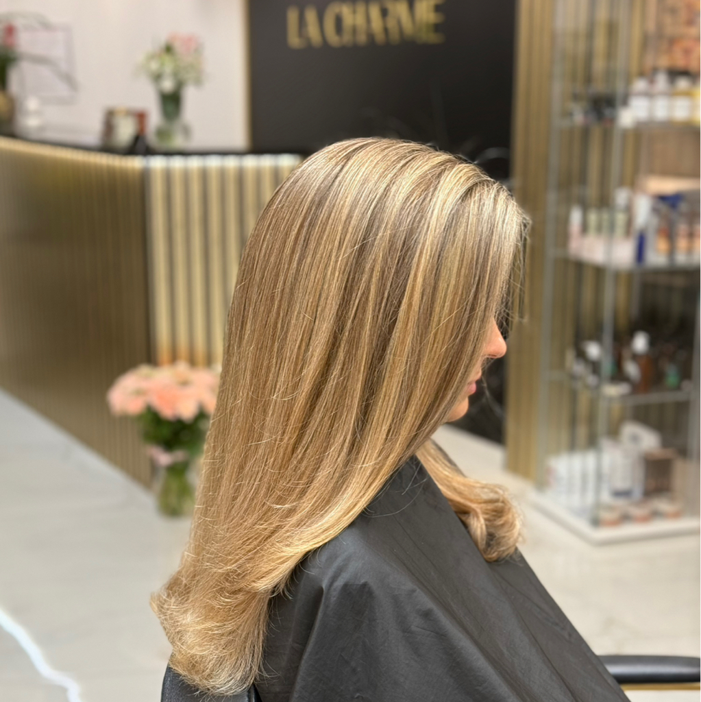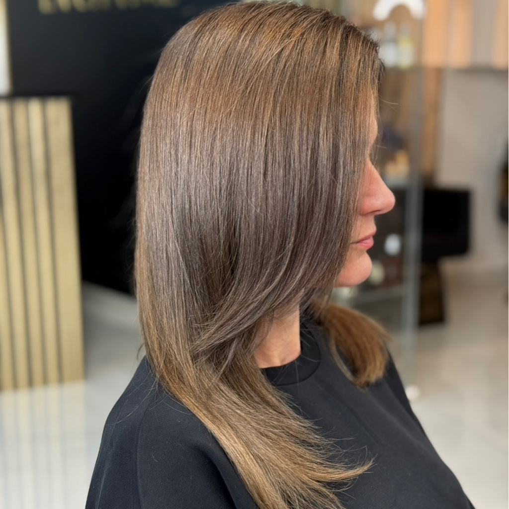 AirTouch, polodlhe vlasy / AirTouch - висвітлення волосся з плавним переходом + тонування волосся (середня довжина волосся)