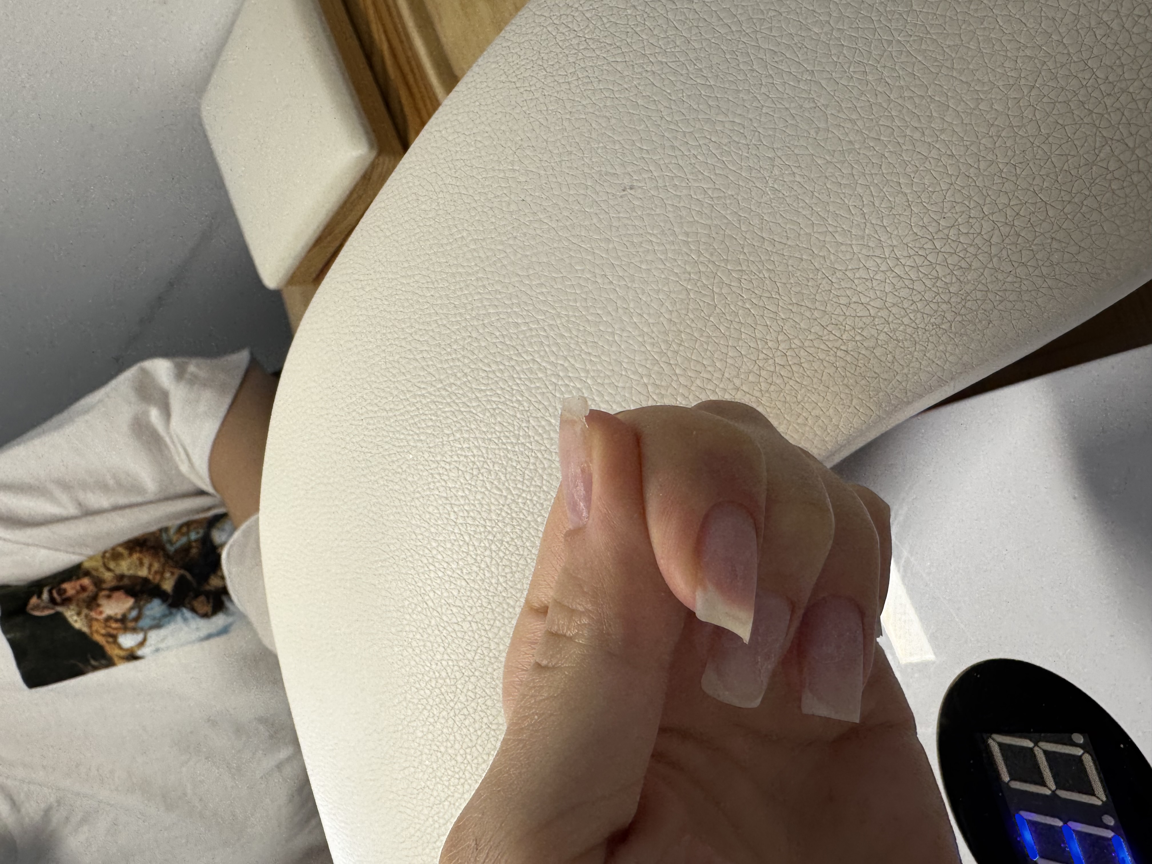 Сделали очень тонкие ногти, итог через неделю носки: - отслойки - сбитые углы - отломанные углы - гнущиеся углы - 1 ноготь наращивали и на фото видно, что будто «прогрызли» При этом мастер утверждает, что сделал все отлично