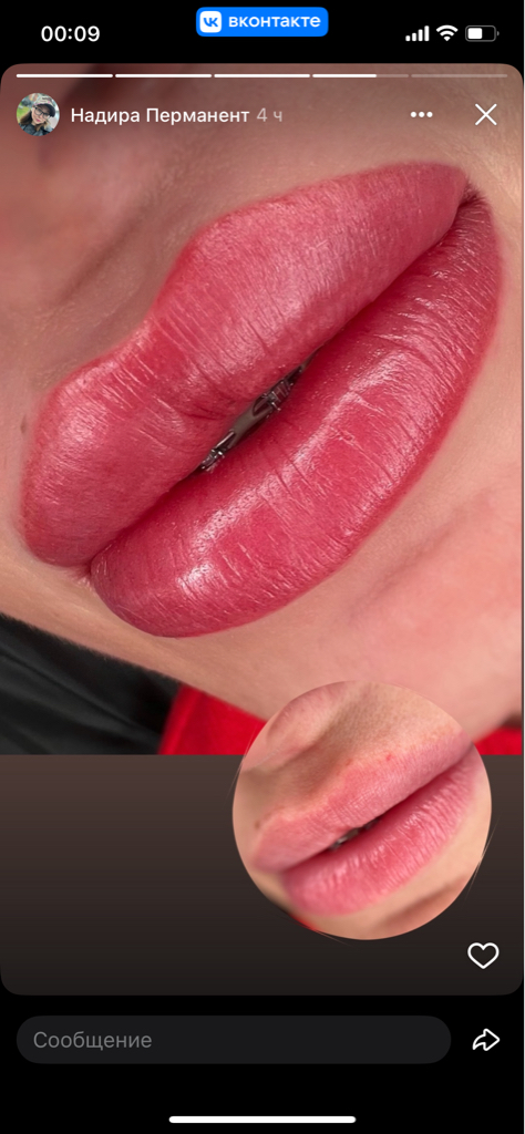 Прихожу на процедуры не первый год. Однажды сделала перманент бровей, теперь только на коррекцию время от времени появляюсь, освежить цвет. На днях сделала еще губки💋О которых мечтала несколько лет да все не решалась. Очень довольна. Форма, цвет, все так как мне хотелось бы.
