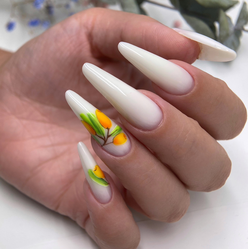 Нарастили ногти на верхние формы, нарисовала рисунок вручную🥹
