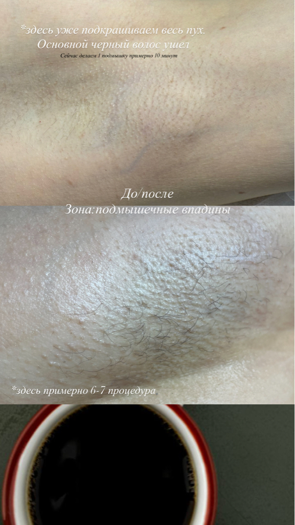 Супер мастер, супер человек, результаты уже после первой процедуры! Прошла неделя, а на подмышках только пушок) Буду дальше ходить на все зоны)