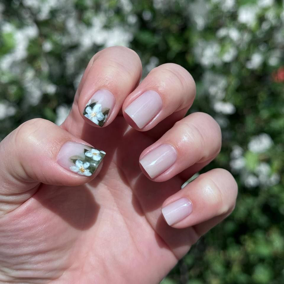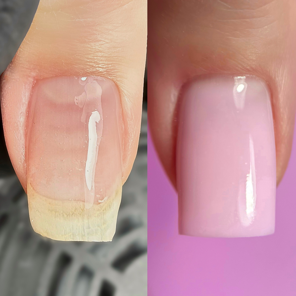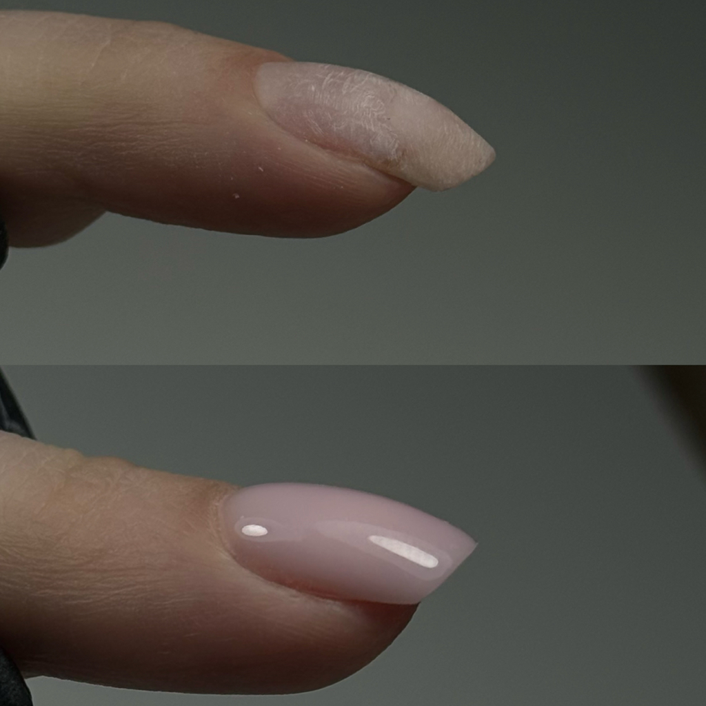 Маникюр с покрытием и выравниванием с помощью верхних форм