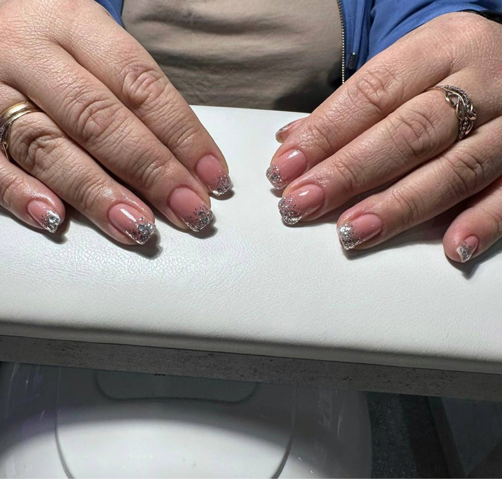 Маникюр с покрытием гель-лак френч •комби маникюр •покрытие гель лаком •выравнивание ногтевой пластины базой •френч на все ногти