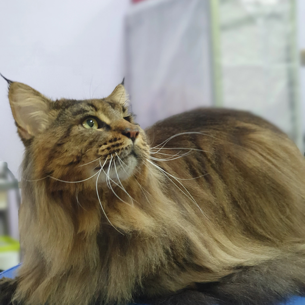 Мейнкун.вычёсывание с мытьём. кот/кошка, стрижка когтей (хозяева помогают держать) доплата за сложность