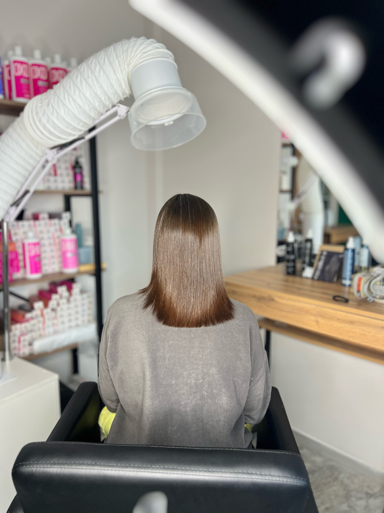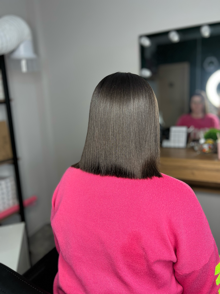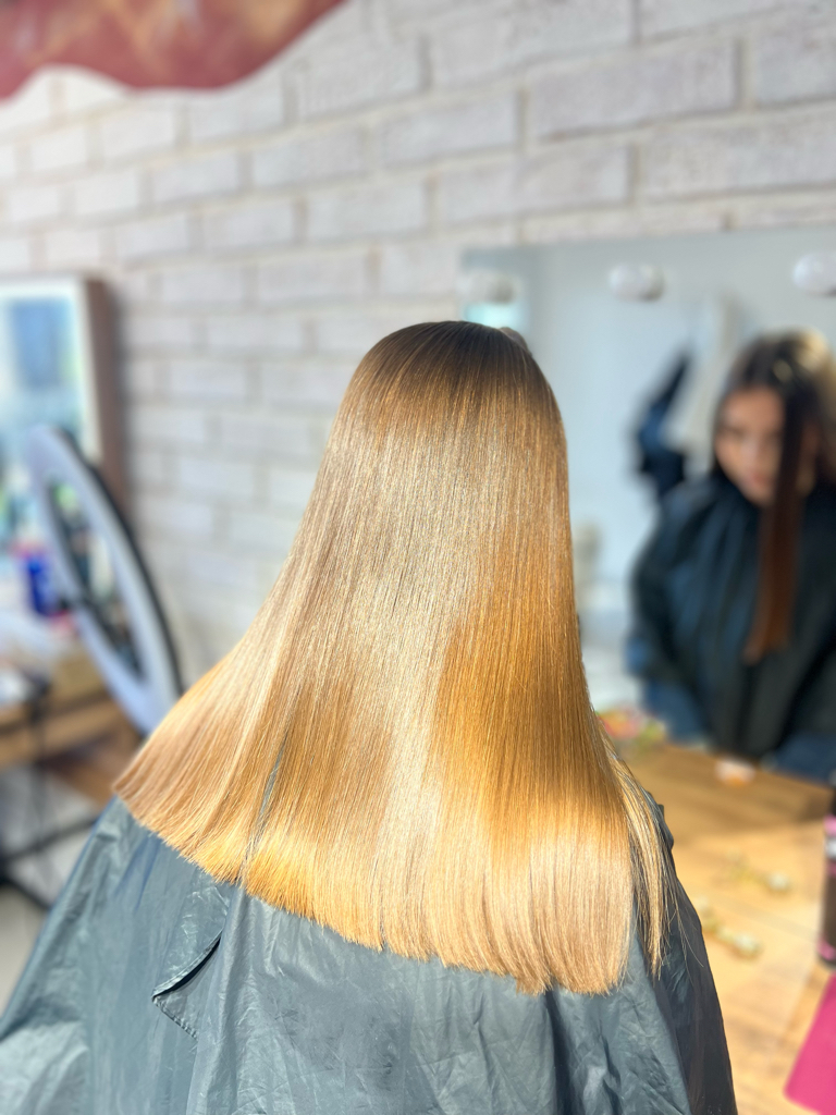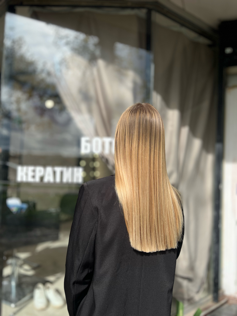 Кератиновое выпрямление волос — это процедура, при которой структура волоса заполняется кератином, благодаря чему волосы становятся гладкими, блестящими и послушными. Убирает пушение, облегчает укладку и выпрямляет даже жёсткие и вьющиеся волосы. Эффект держится до 3–6 месяцев при правильном уходе.