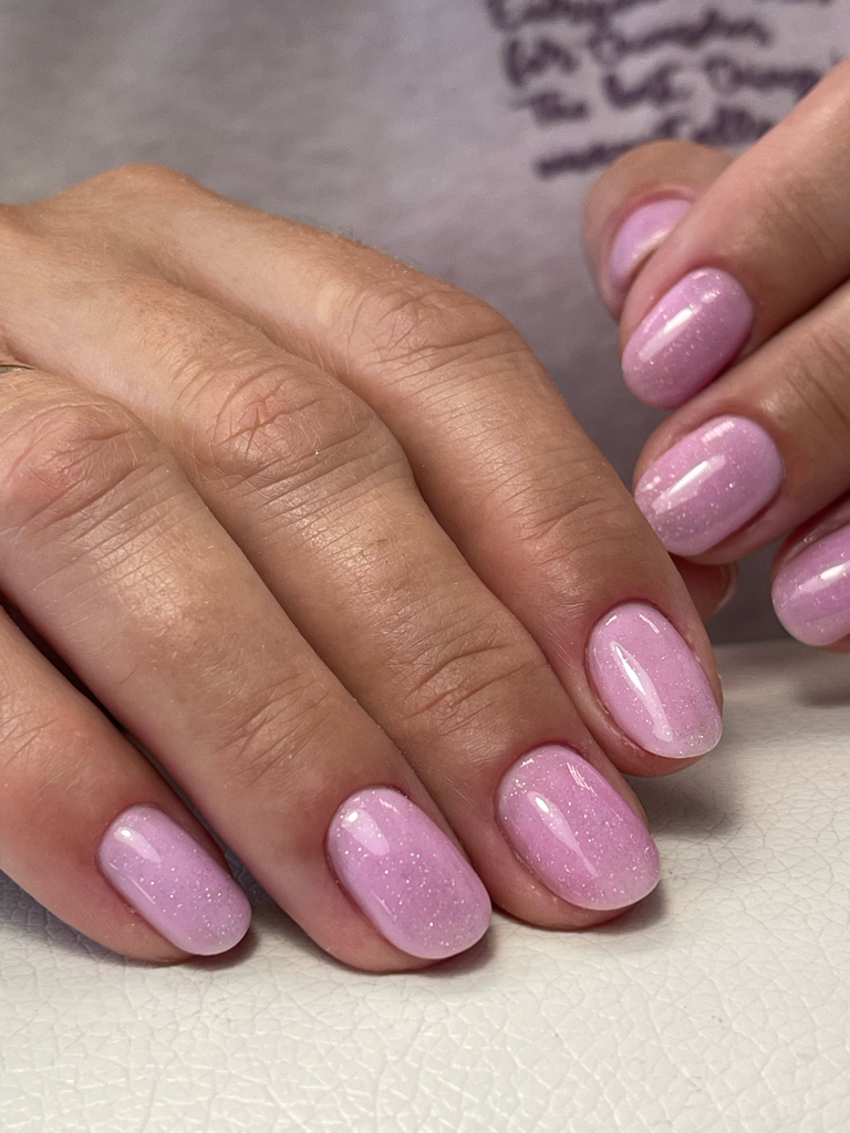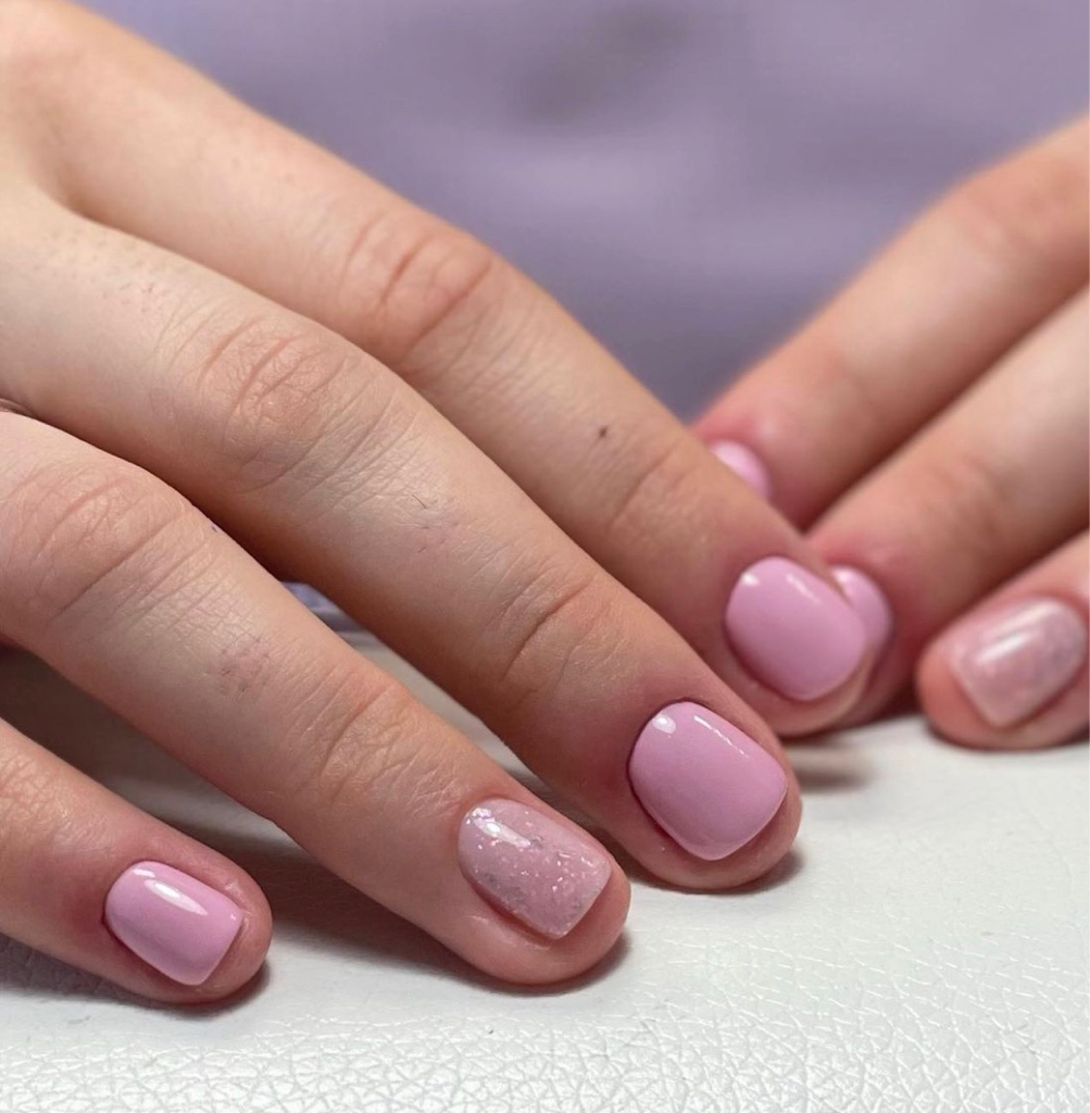 Снятие гель-лака, опил формы, комбинированный маникюр, покрытие гельлаком с выравниванием базой.